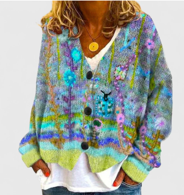 Topel in eleganten kardigan, nepogrešljiv kos oblačila za hladnejše dni in večere. Zasnovan je, da vas greje in hkrati poudari vaš slog, ta kos doda pridih živahnosti in elegance vsakemu outfitu. Ne glede na to, ali se sprehajate ali uživate v sproščenem večeru, je Matilda idealna izbira, da vam bo toplo in boste hkrati očarljivi.
